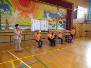 ステージでは、「京の通り名」と「川の流れのように」の体操を披露しました。日頃の体操の成果を披露する機会とあって、少し緊張される方もおられましたが、音楽に合わせて体を動かすうちに自然と笑顔に。