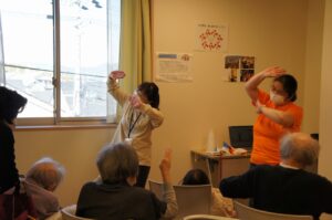 アニメ動画の視聴をはじめ、グループホームかたぎはらの入居者様参加の「かたピーの人形劇」を楽しんだり、南部包括支援センターの職員さんによる認知症〇×クイズを行ったりしました。